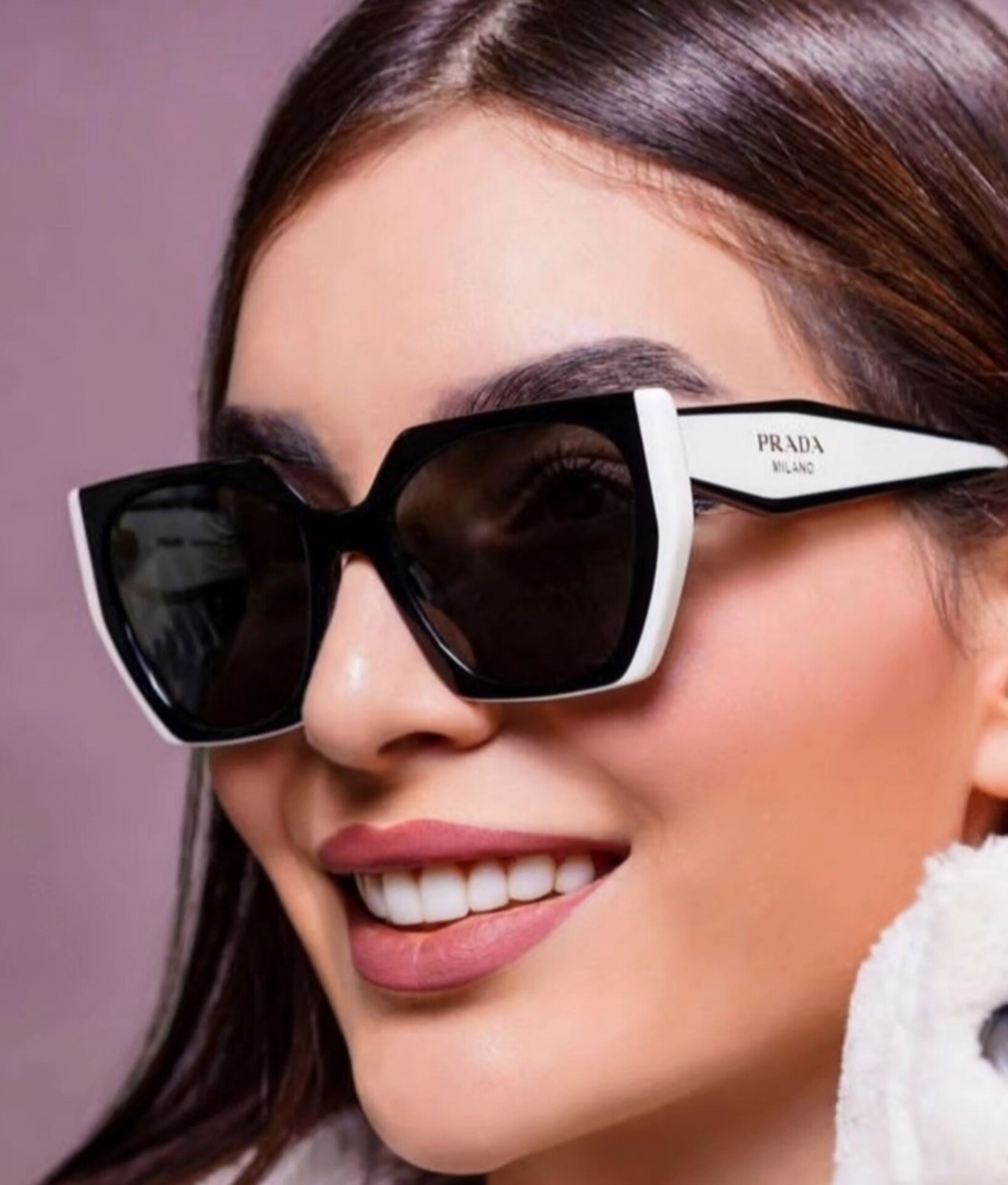 ناموجود عینک آفتابی پرادا با فریم مشکی و دسته سفید کد 1215